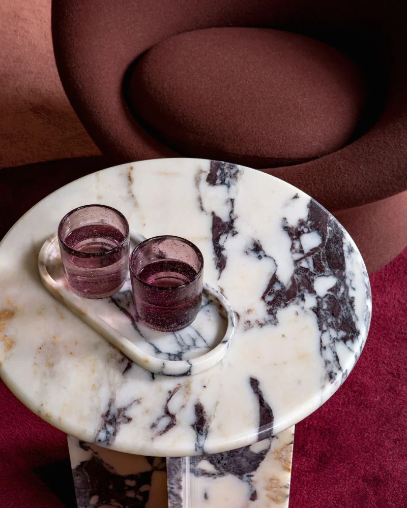 La table d’appoint Athena incarne l’élégance et la noblesse du marbre. Sa surface polie met en valeur des veines naturelles uniques, allant du beige au noir, parfois rehaussées de nuances violettes, rendant chaque pièce absolument singulière. Grâce à son design raffiné et intemporel, elle s’utilise aussi bien comme table de chevet, bout de canapé ou guéridon.