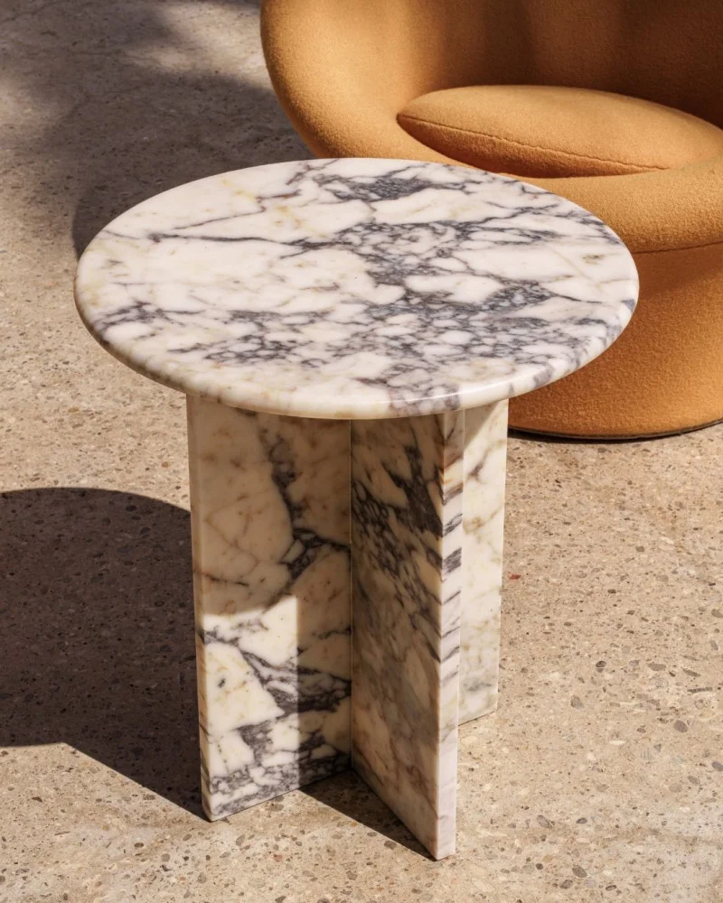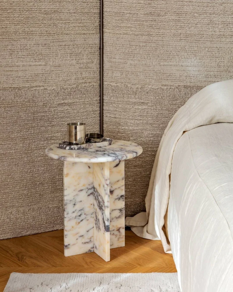 Table d’appoint en marbre de qualité supérieure, design chic et intemporel, idéale comme table de chevet, guéridon ou bout de canapé.