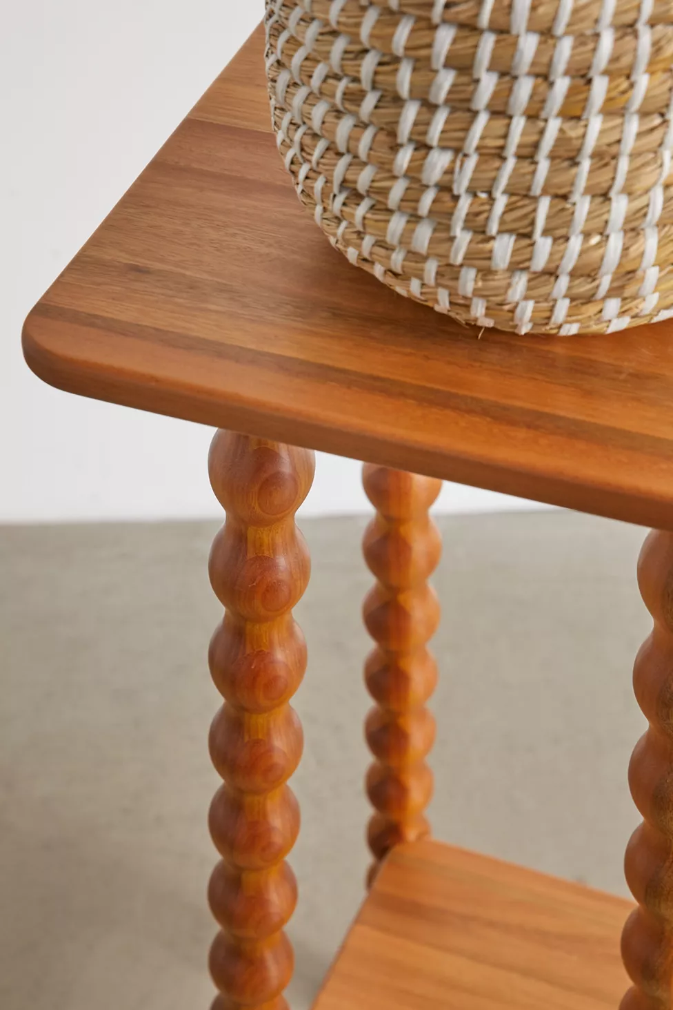 Table d’appoint en bois au style bohème avec plateau carré et étagère ouverte, parfaite pour exposer plantes, livres ou objets décoratifs.